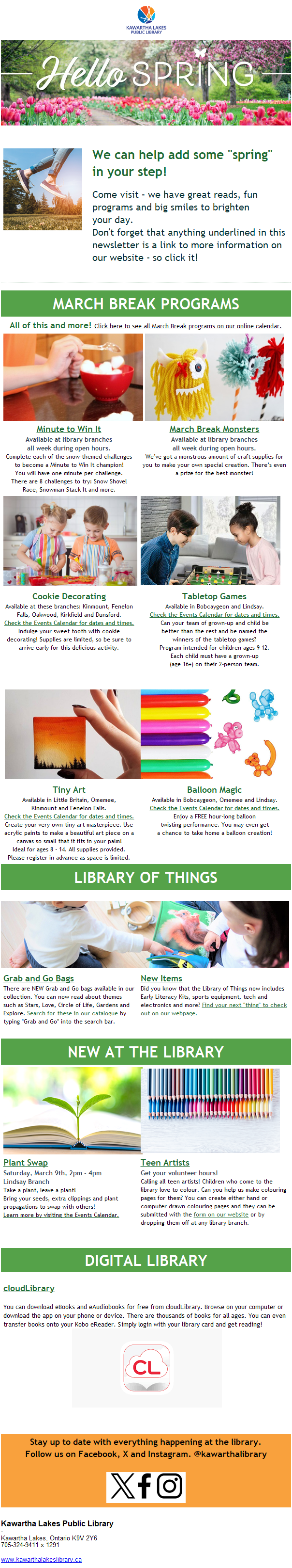 If you wish to subscribe to a library branch newsletter, please email the branch for more details, or to be added to the list.